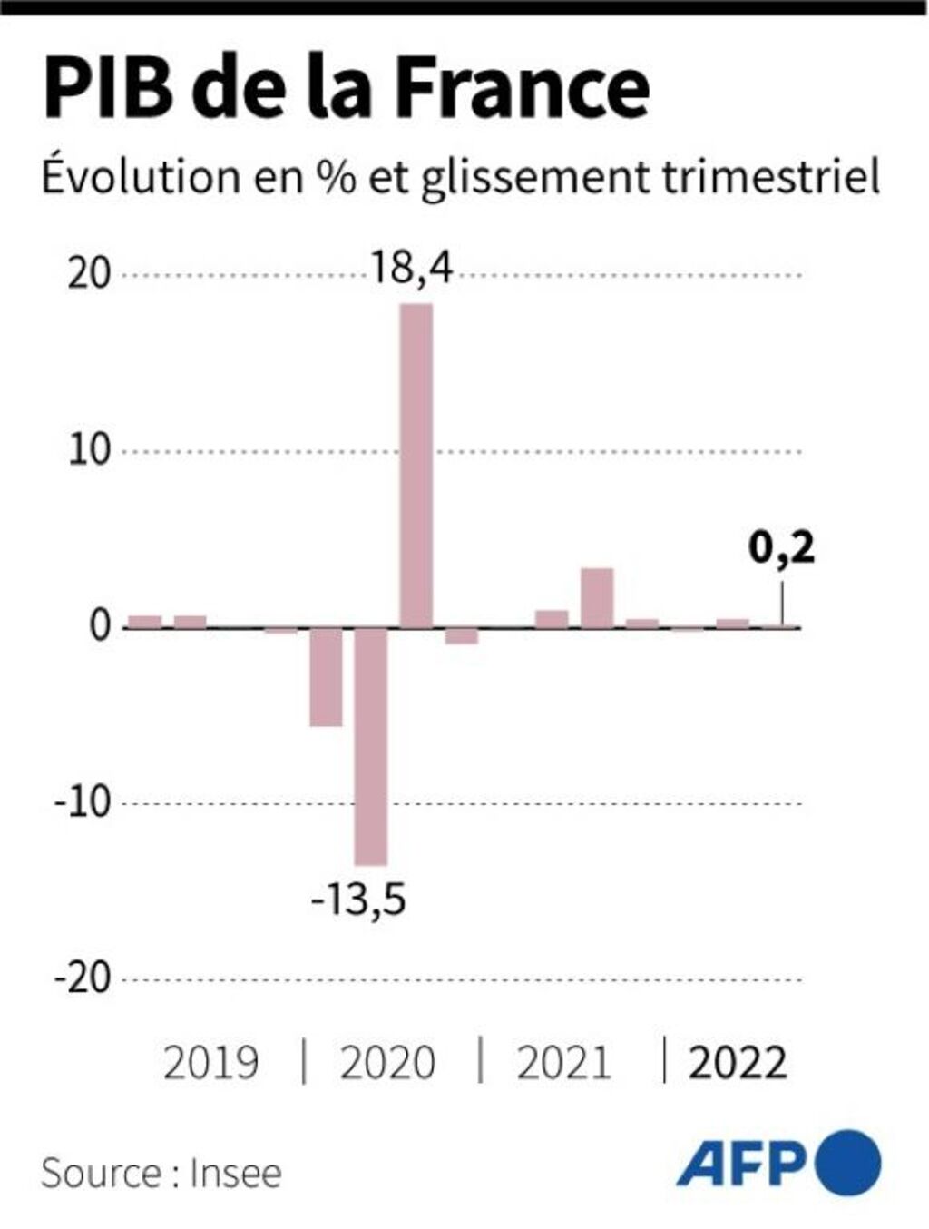 Les trois derniers mois de l'année devraient être plus difficiles, avec une croissance nulle attendue au 4e trimestre par l'Insee, qui prévoit un taux de 2,6% pour l'ensemble de 2022 (0,1 point en dessous de l'estimation du gouvernement).