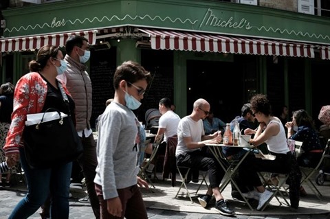 | Des passants devant la terrasse d'un restaurant à Bordeaux, le 9 août. |