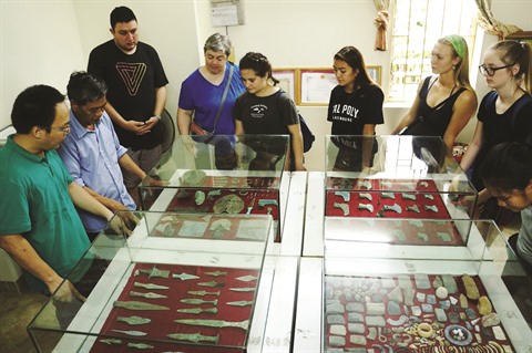 | Objets trouvés lors des fouilles de Vuon Chuôi exposés dans le village de Lai Xá. |