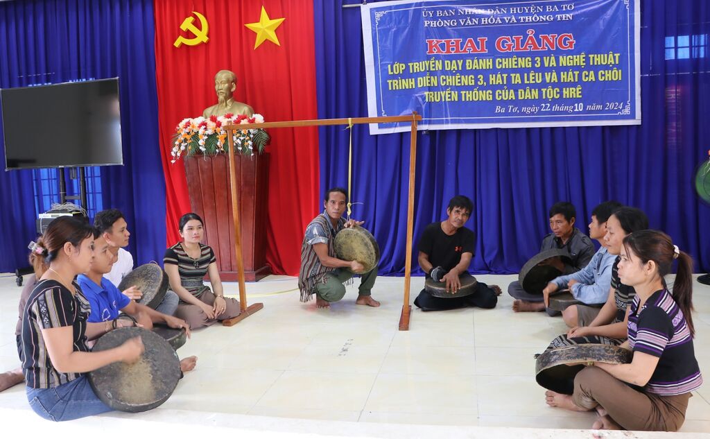 Le Bureau de la culture et de l’information du district a ouvert des cours pour apprendre à jouer du gong et à chanter des chansons folkloriques aux jeunes, aux femmes et aux agriculteurs vivant dans les communes de Ba Diên, Ba Thành, Ba Vinh, Ba Trang et Ba Khâm.