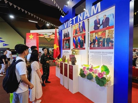 | Dans le stand du Vietnam au concours "Armée de la culture" aux Jeux de l'armée 2022 en Russie. |