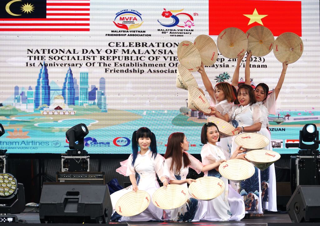 | Un numéro de danse de membres de l'Association d'amitié Malaisie - Vietnam. |