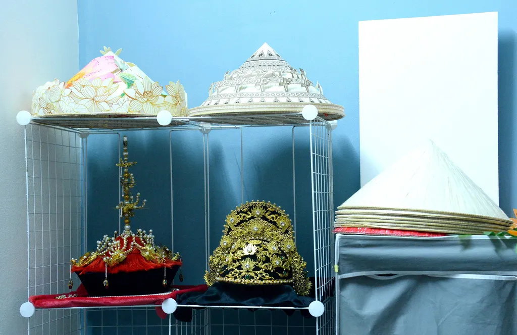 | Tuong Huy recherche des chapeaux coniques de haute qualité pour ses créations. |