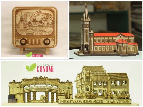 "Dans les ouvrages culturels et historiques que j’ai réalisés sur Dà Nang, Hôi An (province de Quang Nam, Centre) ou Huê (province de Thua Thiên-Huê, Centre), j’ai fait attention à chaque petit détail pour montrer l’originalité de l’héritage patrimonial, culturel et historique de ces localités", partage Binh, patron de la boutique Conomi. Pour un modèle miniature de sculpture sur bois, toutes les étapes, notamment le choix des matériaux et la conception, sont soigneusement élaborées. La présentation d’œuvres typiques de chaque région sur un produit en bois de 10 à 50 cm demande minutie, créativité et patience afin de créer un produit ressemblant et de qualité.