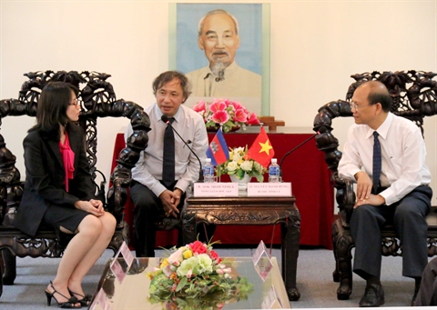| Le secrétaire du Comité du Parti communiste du Vietnam de la province de Binh Thuân, Nguyên Manh Hùng (droite), a reçu vendredi 10 avril, dans cette province centrale, la directrice générale de l’Agence Kampuchea Presse (AKP), Sok Mom Nimul. |