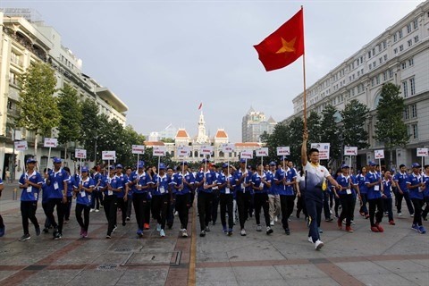 | Une activité célébrant le départ de la délégation vietnamienne aux SEA Games 29, le 6 août à Hô Chi Minh-Ville. |