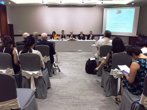 | Vue générale de la conférence de presse donnée par la Délégation Wallonie-Bruxelles au Vietnam, le 14 septembre à Hanoi. |