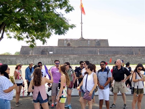 | Des touristes étrangers visitent l'ancienne cité impériale de Huê (Centre). |