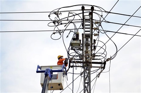 | Un ouvrier du groupe Électricité du Vietnam vérifie une installation éléctrique dans la province de Quang Ngai (Centre). |