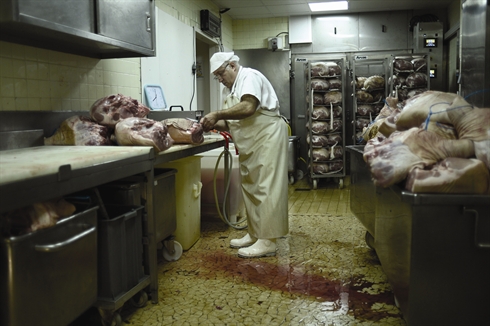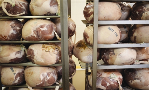 Cette humble charcuterie, qui accompagnera la purée des enfants ou finira avec des cornichons dans un sandwich, est ici fabriquée à la main, tel un produit de luxe, et bien différemment des jambons industriels vendus en barquette dans les supermarchés.