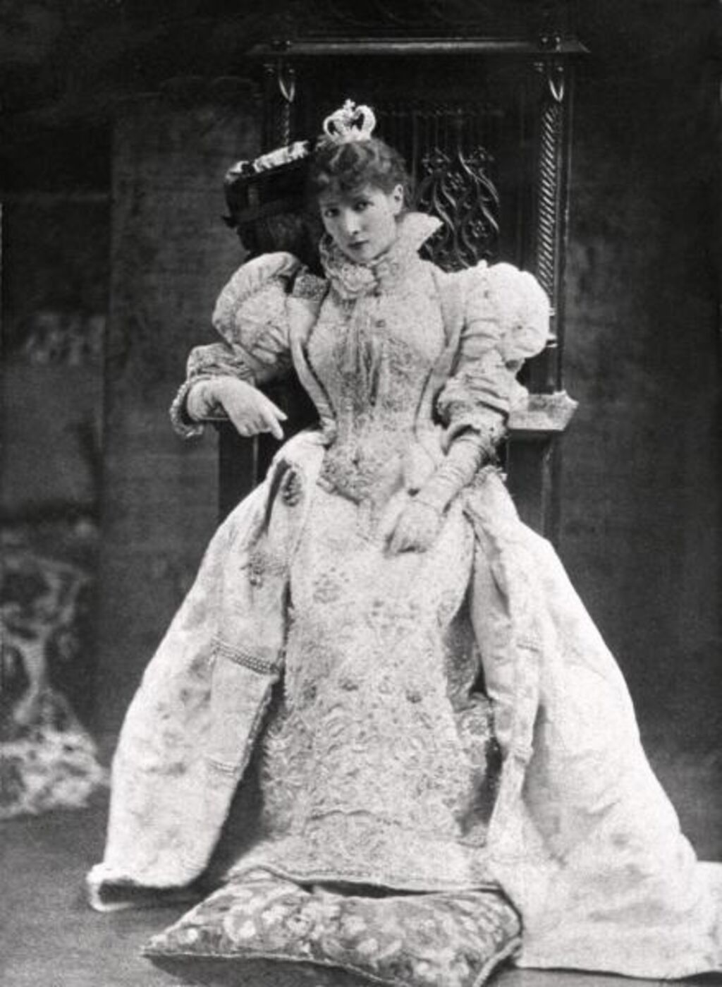 | La comédienne française Sarah Bernhardt joue le rôle de la reine +Dona Maria de Neubourg+ dans +Ruy Blas+, pièce de Victor Hugo, en 1878, à La Comédie-Française. |