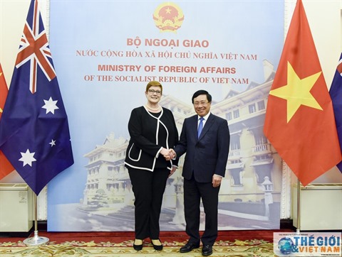 La ministre Marise Payne a précisé que le gouvernement australien continuait d'accorder une haute priorité au Vietnam dans sa politique étrangère, considérant le Vietnam comme l'un des principaux partenaires de la région indo-pacifique souhaitant reclasser bientôt leurs relations au niveau du partenariat stratégique intégral.