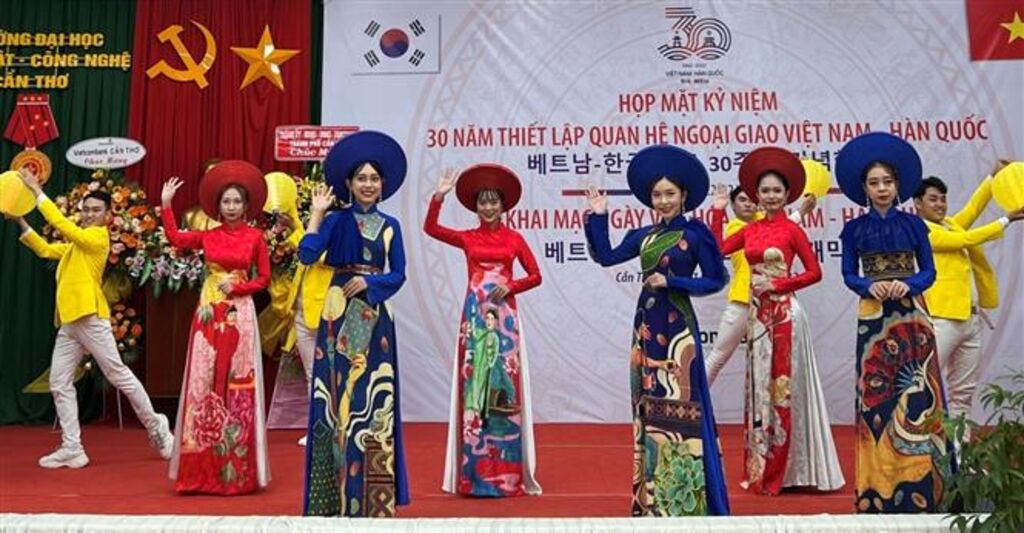| Défilé de la tenue traditionnelle des Vietnamiennes lors de la Journée culturelle Vietnam - République de Corée organisée dans la ville vietnamienne de Cân Tho (Sud), le 21 novembre 2022. |
