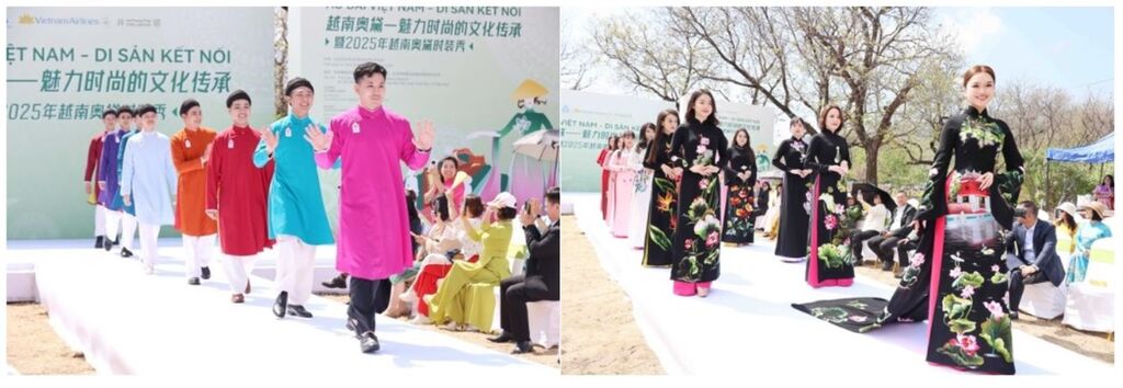 | À l'occasion du 75e anniversaire des relations diplomatiques entre le Vietnam et la Chine et de l'Année des échanges humanistes entre le Vietnam et la Chine, des représentants de la communauté vietnamienne en Chine organisent le défilé d'"ao dài" à Pékin du 18 au 20 avril dernier. |