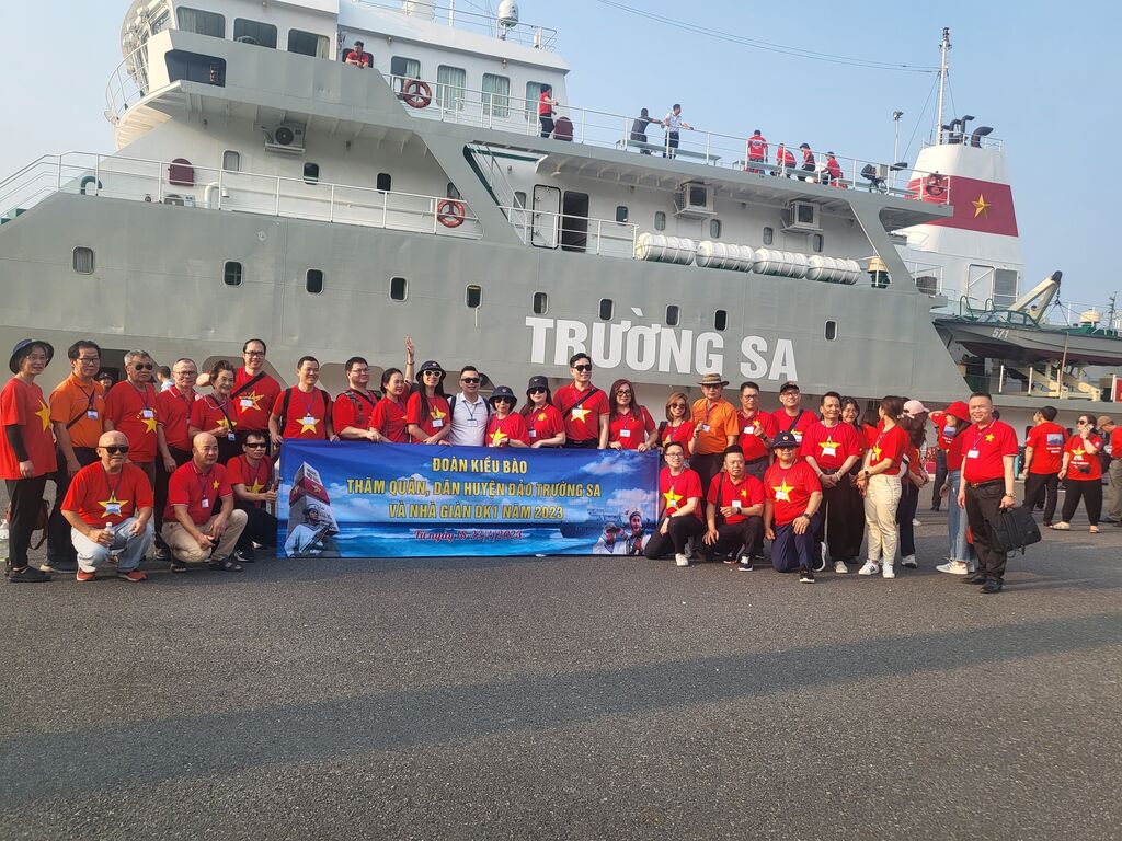 | Des Vietnamiens d'outre-mer visitent Truong Sa et la plate-forme DK1 en 2023. |