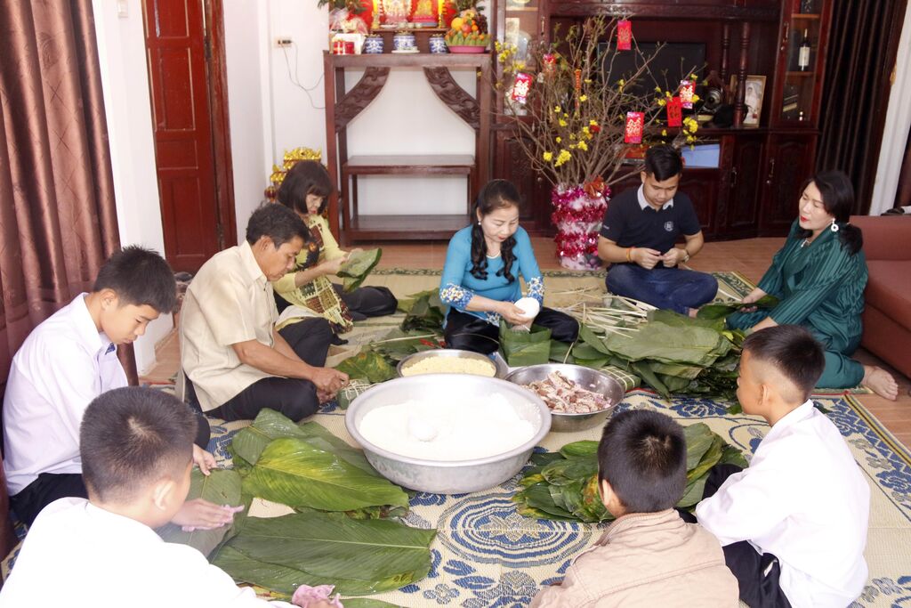 | Des Vietnamiens résidant au Laos se réunissent pour préparer des gâteaux de riz à l'occasion du Nouvel An lunaire. |