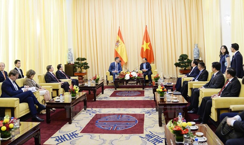| Le président du Comité populaire de Hô Chi Minh, Nguyên Van Duoc, reçoit le Premier ministre espagnol Pedro Sánchez, le 10 avril. |