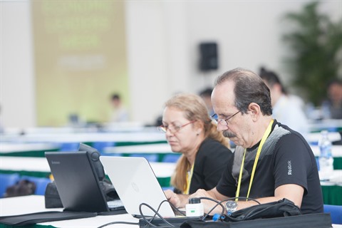 | Des journalistes étrangers lors d'une conférence de presse de l'APEC 2017 au Vietnam |