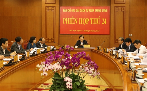 | Le président Truong Tân Sang (centre) prend la parole lors de la 24e réunion de la Direction centrale de la réforme judiciaire, le 13 novembre à Hanoi. |