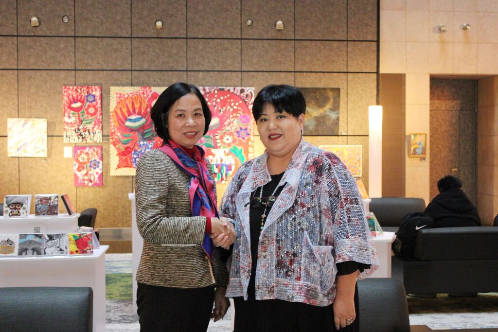 | La directrice générale de la VNA, Vu Viêt Trang (gauche), et la directrice générale de l'agence de presse MONTSAME de Mongolie, Sodontogos Erdenetsog. |