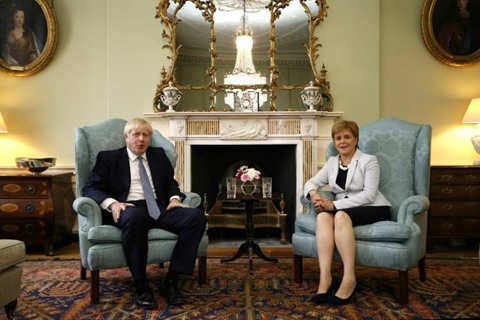 "Après mes discussions avec Boris Johnson, derrière tout le bluff et la fanfaronnade, c'est un gouvernement qui est dangereux", a décrété Nicola Sturgeon, dont la région a voté pour rester dans l'Union européenne lors du référendum de 2016.