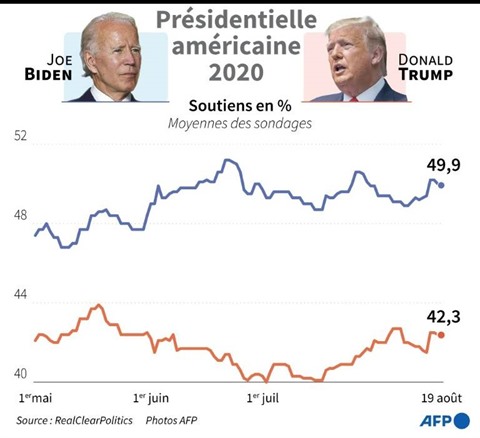| Moyenne de sondages de RealClearPolitics sur le scrutin présidentiel américain au 19 août. |