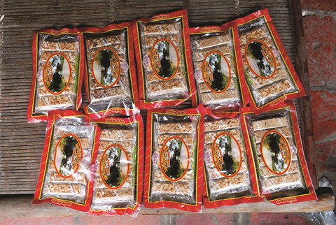 "Vous aurez beau avoir goûté aux bonbons du monde entier, rien ne pourra rivaliser avec le blé et la cacahuète de ma contrée". C’est sur cette présentation bien connue des habitants de Duong Lâm que Cao Van Hiên conclut la visite de son atelier de bonbons de la marque Hiên Bao. Là, des cartons ouverts regorgent de trésors que la terre produit aux alentours : sucre de canne, malt, arachides et graines de sésame se déclinent en différentes recettes (bonbons au sésame, à la cacahuète, etc.) proposées aux touristes gourmands en promenade à Duong Lâm. Sur les stands de souvenirs dressés dans le village, le paquet de bonbons remplace la carte postale.