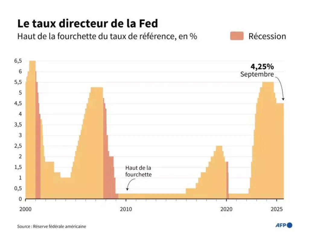 La banque centrale des États-Unis a sans surprise abaissé ses taux directeurs d'un quart de point de pourcentage. Et une courte majorité de ses responsables ont laissé la porte ouverte à deux baisses supplémentaires d'ici la fin de l'année.