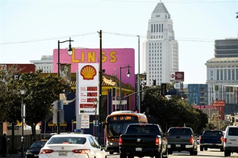 | Une station-service de Los Angeles (Californie), le 17 février. |