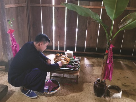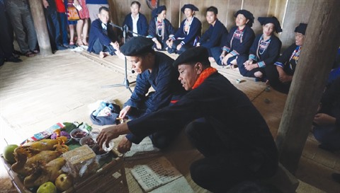 | Les premiers jours du Nouvel An ou lors d’une journée adaptée, les H’mông invitent le chaman à effectuer la cérémonie de "dissipation du malheur". |