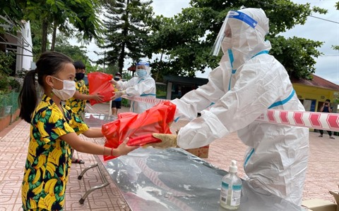 | Remise de cadeaux aux enfants dans une zone de quarantaine à Diên Biên (Nord). |