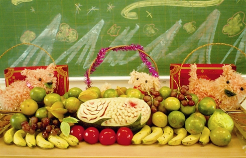 | Un plateau de fruits et de friandises pour le Têt Trung Thu. |