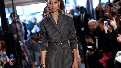 C'était la fête au défilé Sonia Rykiel, où les mannequins souriaient et esquissaient des pas de danse sur le podium, coiffées à la façon de la fondatrice de la maison disparue en 2016, connue pour sa crinière rousse. En tenues de soirée scintillantes, en robes noires à volants ou zébrées de zips, en chapkas et bottines de fourrure ou en tailleur pantalon de velours, ces femmes avancent sûres d'elles et joyeuses, au son de Madness, groupe de ska britannique des années 1970-80.