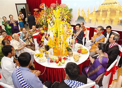 | L’ambassade du Laos au Vietnam a célébré le 7 avril à Hanoï le Nouvel an traditionnel lao, le Bunpimay. Photo : Van DIêp/VNA/CVN |