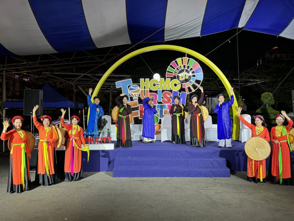 | Un spectacle de chants populaires “quan ho” lors de la fête touristique à Hô Chi Minh-Ville. |