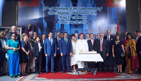 De nombreux diplomates et amis du Maroc ont assisté à la célébration de la Fête du trône (30 juillet) organisée par l’ambassade du Maroc à Hanoï, en l'honneur du 19e anniversaire du couronnement du Roi Mohammed VI Ben al-Hassan (1999-2018).