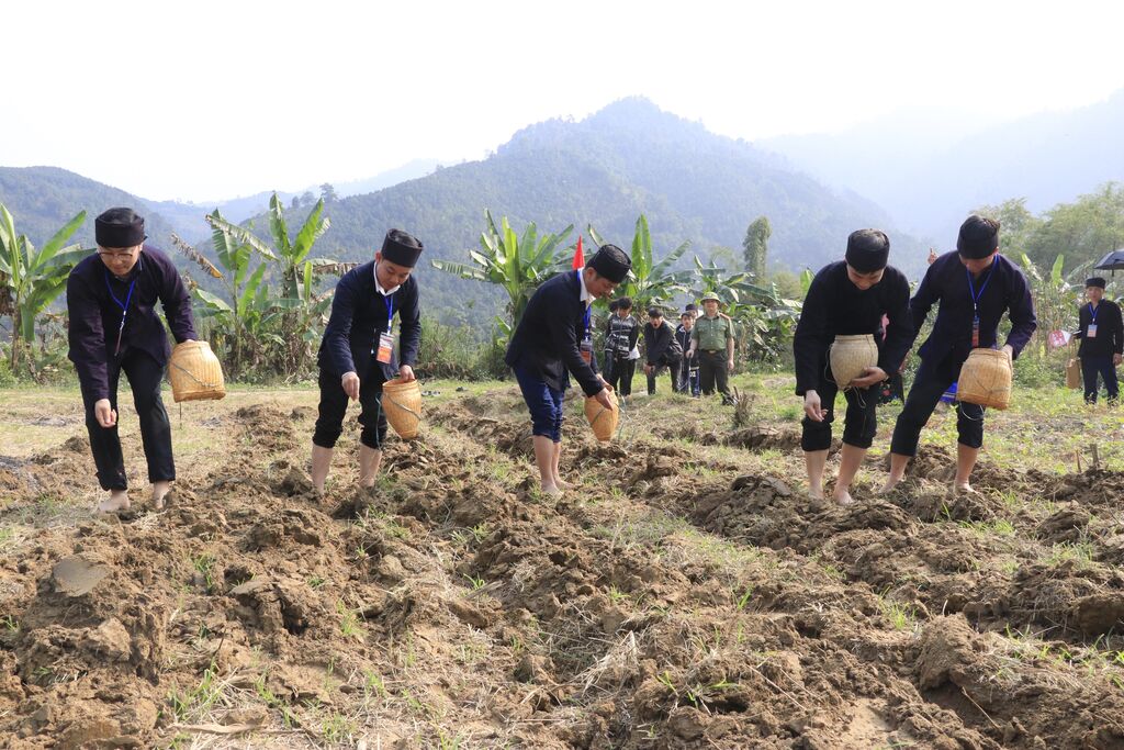 Outre la partie rituelle, la fête propose également de nombreuses activités festives, notamment des jeux populaires tels que le lancer de “còn“, le tir à la corde, la marche sur échasses ou encore le jeu du tambour les yeux bandés. Des chants et danses traditionnels, ainsi que des échanges culturels, animent l’événement. Un espace d’exposition de produits locaux attire aussi les visiteurs avec des spécialités montagnardes telles que riz gluant aux cinq couleurs, poisson bông, poulet noir et autres produits agricoles.