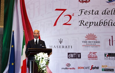 | Dante Brandi, consul général d'Italie à Hô Chi Minh-Ville, prend la parole lors du 45e anniversaire des relations diplomatiques entre le Vietnam et l'Italie. |