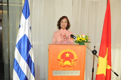 | L'ambassadrice du Vietnam en Grèce, Trân Thi Hà Phuong, s’exprime lors de la cérémonie de célébration de la Fête nationale, le 31 août à Athènes. |