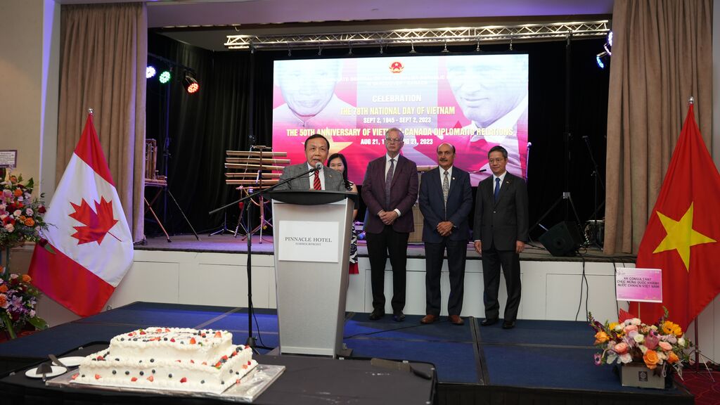 Le même jour au Canada, le consulat général du Vietnam à Vancouver a organisé une cérémonie célébrant la Fête nationale et le cinquantenaire de l’anniversaire de l'établissement de relations diplomatiques entre le Vietnam et le Canada (le 21 août 1973).