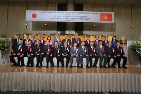 | Des délégués à la cérémonie marquant le 74e anniversaire de la Fête nationale du Vietnam à Fukuoka (au Japon). |