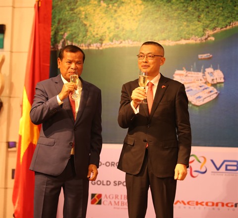 | L'ambassadeur du Vietnam au Cambodge, Vu Quang Minh (droite) et le ministre cambodgien du Tourisme, Thong Khon, la réception en l'honneur de la Fête nationale du Vietnam (2 septembre). |