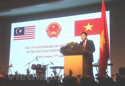 | L’ambassadeur du Vietnam en Malaisie Lê Quy Quynh prend de la parole lors de la cérémonie marquant le 73e anniversaire de la Fête nationale du Vietnam. |