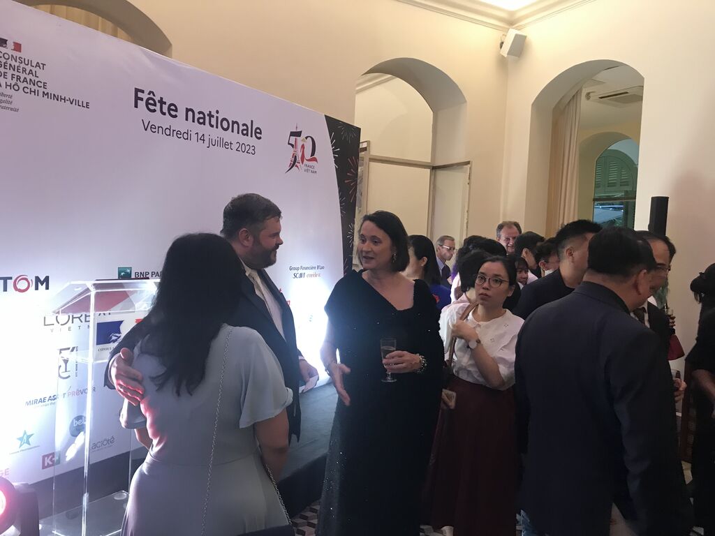 | Rencontre entre la consule générale de France et les conviés, entreprises françaises et vietnamiennes. |