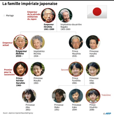 | Arbre généalogique de la famille impériale du Japon. |