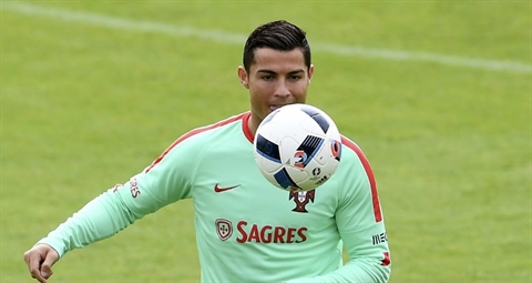 | Cristiano Ronaldo, lors d'un entraînement avec le Portugal au camp de base de Marcoussis, le 5 juillet. |