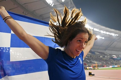 | La perchiste grecque Katerina Stefanidi, médaillée de bronze aux Mondiaux de Doha en 2019, est hostile au maintien des Jeux de Tokyo. |