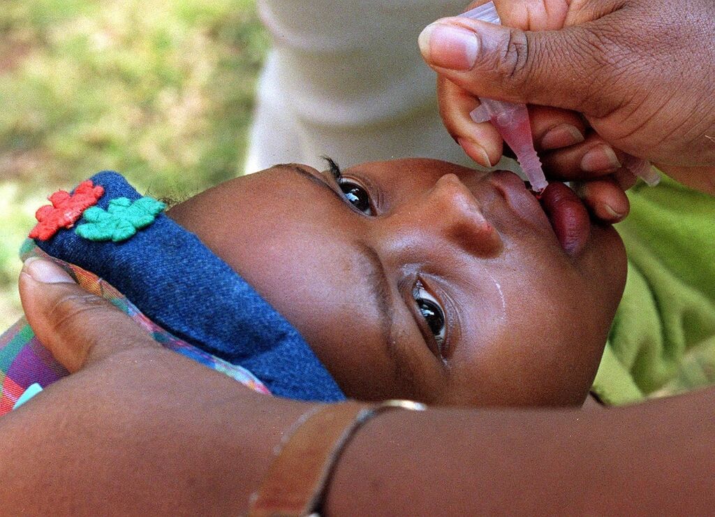 | Un enfant reçoit une dose de vaccin contre la polio à Johannesburg, en Afrique du Sud. |