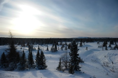 | Le permafrost couvre environ 25% des terres de l'hémisphère Nord, notamment en Russie et au Canada. Ici une photo prise dans l'Arctique, au Canada, le 7 décembre 2014. |