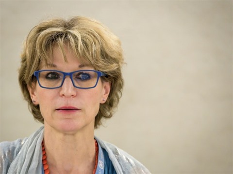 | Agnès Callamard lors d'une conférence de presse à Genève. |